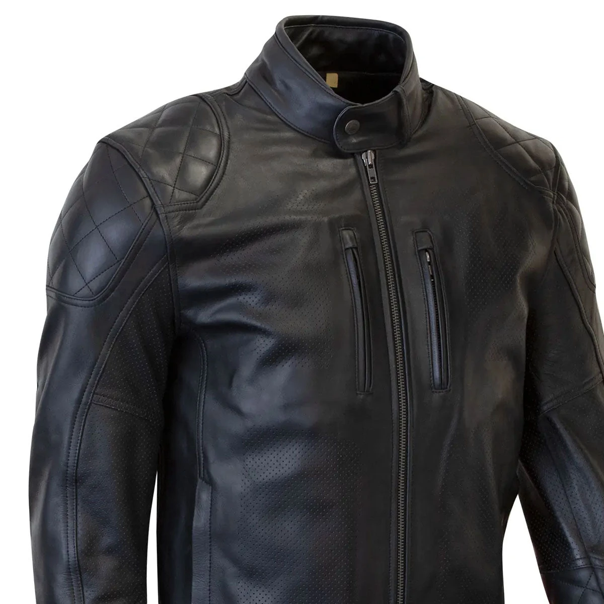 A classic leather jacket with a difference. Deliberately light in weight, the leather jacket sports perforated panels for additional airflow in summer. The 1.0-1.1mm leather has a tactile waxed finish you will adore. Quite possibly the one and only perfect summer leather jacket.