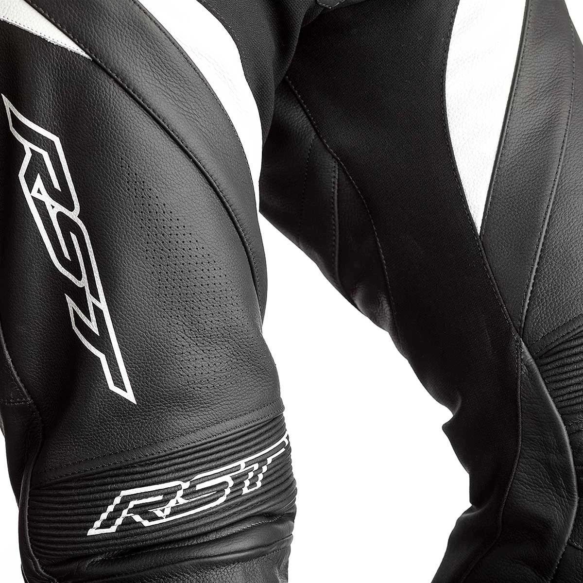 The RST leather jacket with the matching name joins up easily via a 360deg zip to make a 2 piece leather suit.